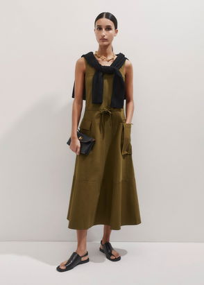 Cotton Cord Pleated Midi Dress Bronzed Green