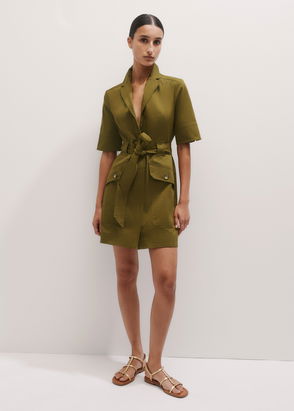 Collared Zip Front Utility Dress + Belt Deep Golden Olive