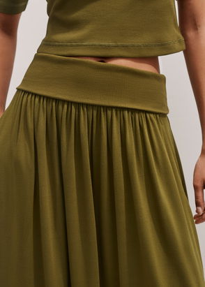 Rib Waist Maxi Skirt Deep Golden Olive