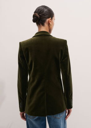 Velvet Sharp Shoulder Blazer Intense Olive