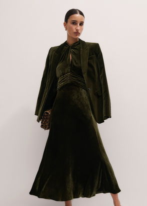 Silk Blend Velvet Maxi Dress Intense Olive