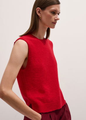 Brushed Cashmere Slim Knit Vest Poppy Red
