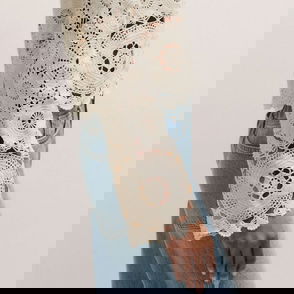 Crochet Lace Cotton T-Shirt Topaz Blue