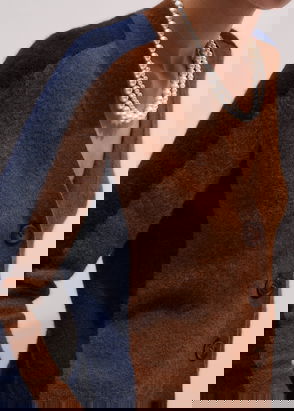 Contrast Panel Relaxed Cardigan Burnt Caramel/Indigo Blue