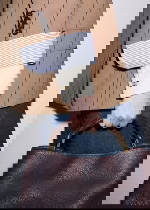 Relaxed Stripe Knit Henley Tee Bright Navy/Olive
