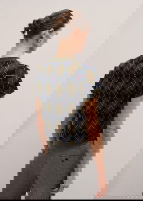 Cashmere Argyle Knit Baby Tee Olive Multi