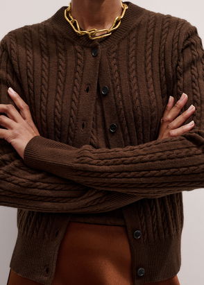 Merino Cashmere Micro Cable Cardigan Deep Chestnut
