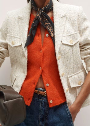 Merino Cashmere Barely There Trim Jumper Vivid Orange Soft White