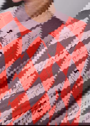 Fine Argyle Slim Knit Cardigan Smoke Pink/Poppy Red