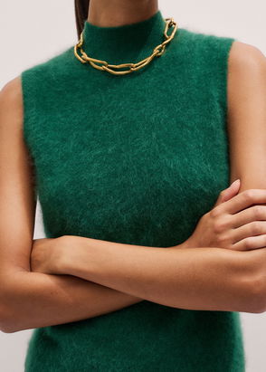 Brushed Cashmere High Neck Slim Knit Vest Eden Green