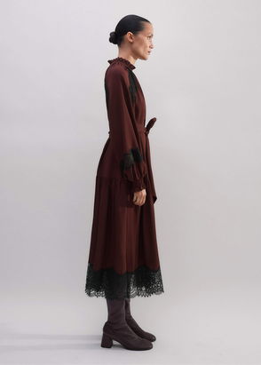 Silk Lace Midi Dress + Belt Rum Raisin/Black