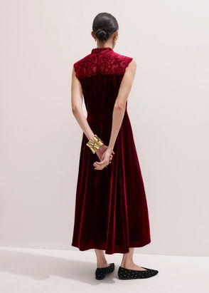 Silk Blend Velvet Embroidered Midi Dress Intense Red