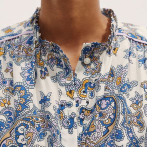 Cotton Geo Paisley Print Midi Dress Light Cream/Chambray Blue/Multi