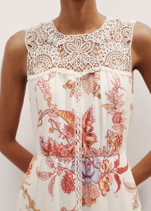 Cotton Trailing Lotus Print Midi Dress Cream/Green/Multi