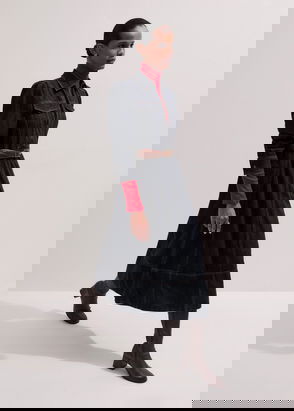 Cotton Cord Pleated Midi Dress Bronzed Green
