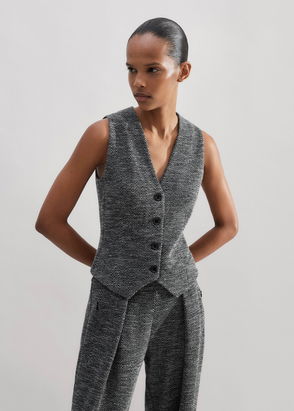 Round Neck Pinstripe Waistcoat Ivory/Black
