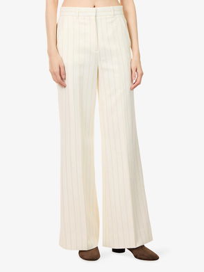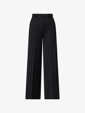Metallic Pinstripe Straight-Leg Woven Trousers