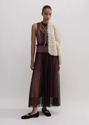 Tulle Maxi Dress + Tie Chocolate Brown/Pink