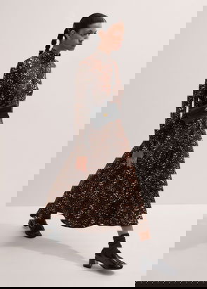 Twisting Feather Print High Neck Maxi Dress Brown Multi