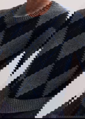 Cashmere Relaxed Argyle Jumper Mid Grey Melange/Navy
