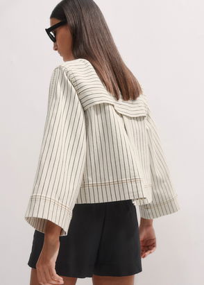 Italian Denim Pinstripe Swing Jacket Black/Ecru