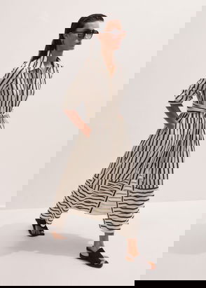 Crease-Less Linen Spring Stripe Maxi Dress + Belt Light Cream Multi