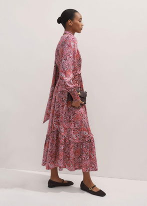 Intricate Paisley Print Maxi Dress + Tie Sugar Salmon/Pink/Multi