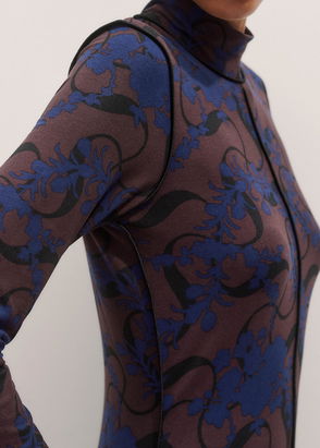 Twisting Feather Print High Neck Maxi Dress Brown Multi