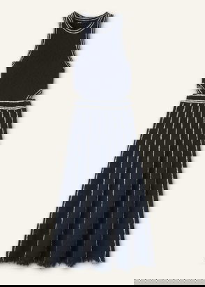 Cotton Boucle Cut Out Maxi Dress Navy/Cream