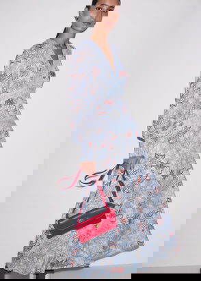 Tulip Print Midi Dress Brown/Pink/Multi