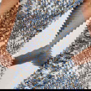 Cotton Geo Paisley Print Midi Dress Light Cream/Chambray Blue/Multi