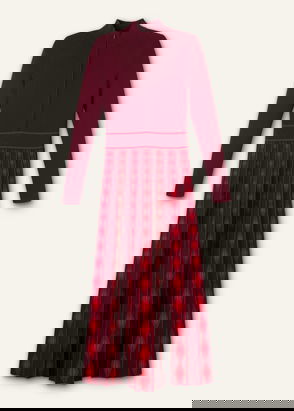 Jacquard Half Zip Knit Maxi Dress Red Multi