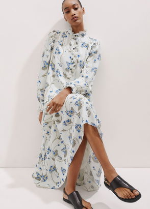 Silk Forget-Me-Not Print Maxi Dress Light Cream/Blue/Multi