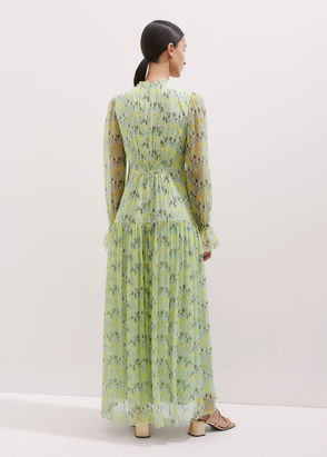 Silk Growing Daisy Print Halterneck Maxi Dress Light Cream/Green/Multi