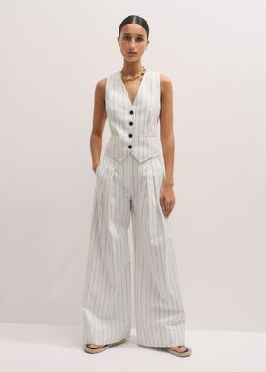 Metallic Pinstripe Tailored Vest Ivory/Gold
