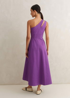 Cotton Sateen One Shoulder Midi Dress Summer Purple