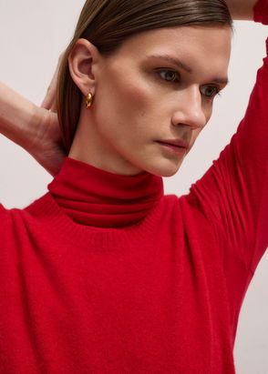 Cashmere Curved Hem Raglan Jumper + Snood Poppy Red
