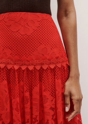 Graphic Floral Lace Maxi Skirt Poppy Red