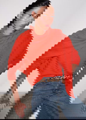 Cashmere Triangle Knit Scarf Vivid Orange