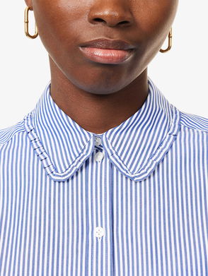 Frill-Trimmed Collar Pinstripe Cotton Shirt