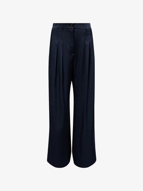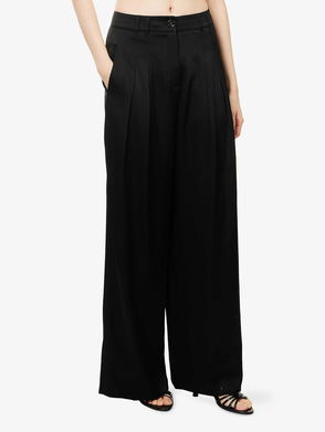 Double-Pleated Wide-Leg Satin Trousers