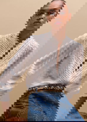 Cheesecloth Pleat Detail Blouse Soft White