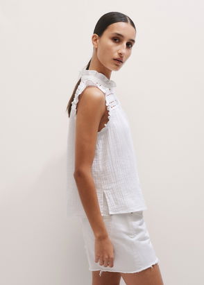 Cheesecloth Lace Detail Top Soft White