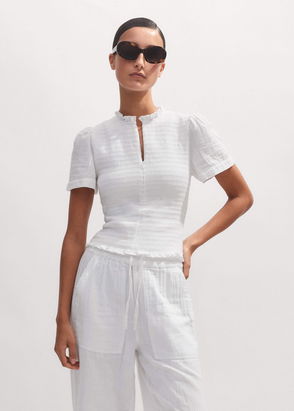 Cheesecloth Shirred Zip Top