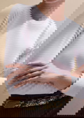 Cotton Rib Long Sleeve Top Bright White