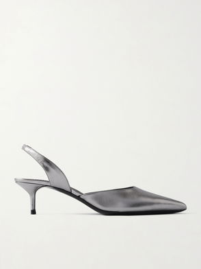 One Stud Metallic Pebbled-leather Slingback Pumps