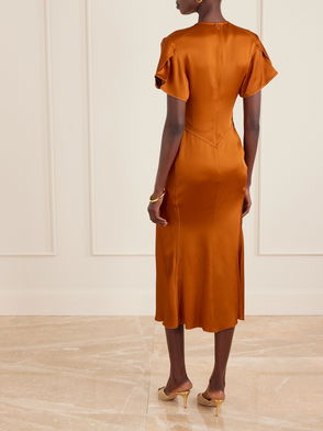 Gathered Satin Midi Dress