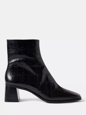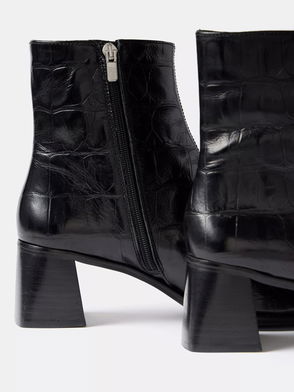 Leather Pointed Toe Kitten Heel Ankle Boots, Silver