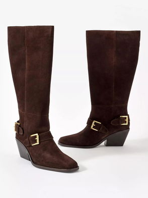 Isabelle Suede Whipstitch Calf Boots, Tan