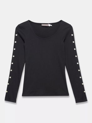 Cotton Blend Button Trim Long Sleeve Scoop Neck Shirt